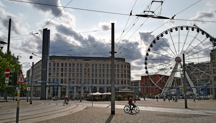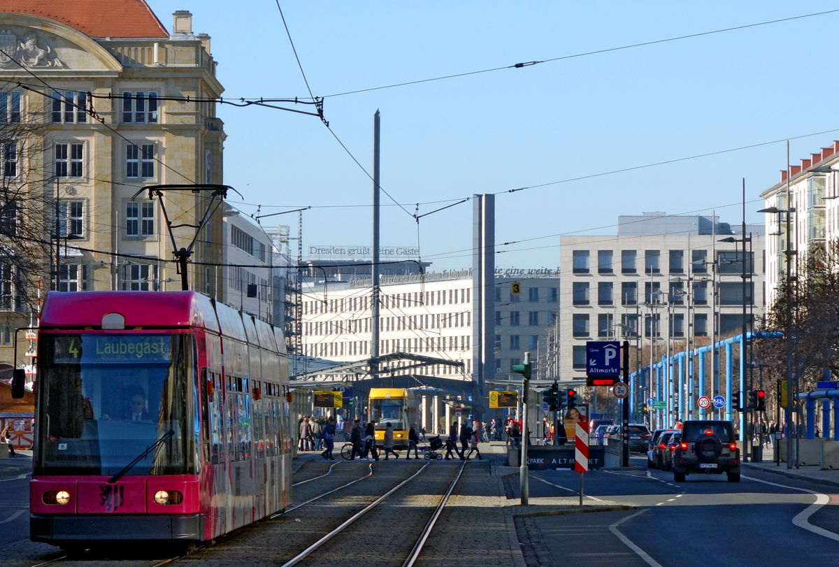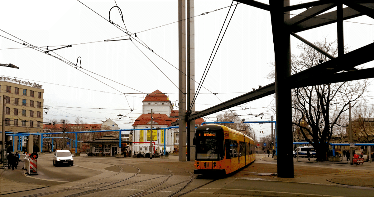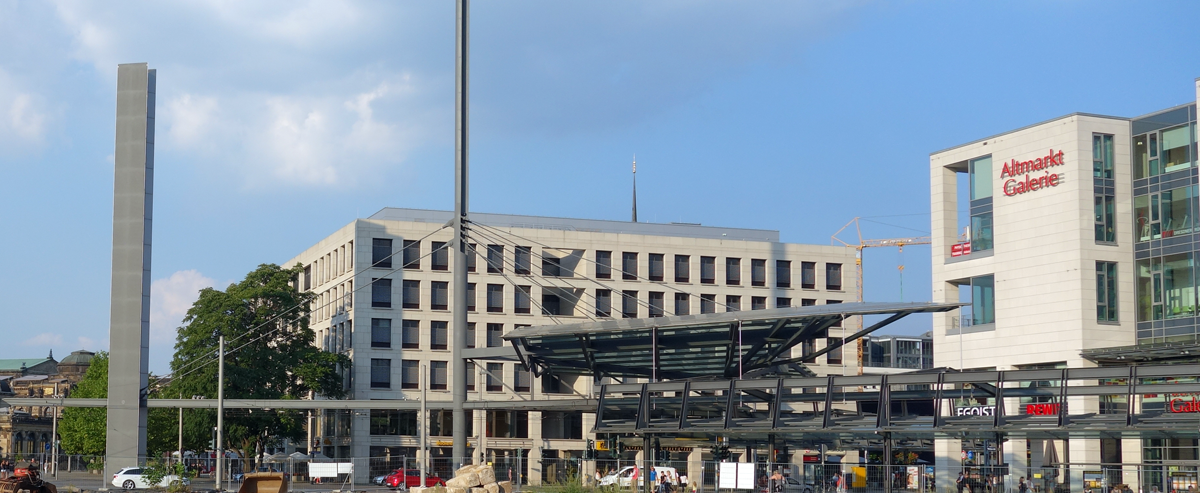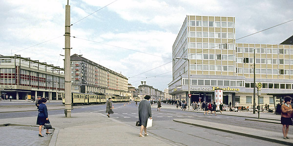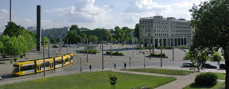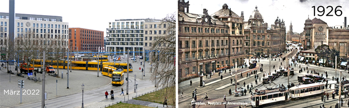 Wir befinden uns an einem der ehemals quirligsten Plätze Dresdens,der seit der Zerstörung 1945 sein neues Gesicht sucht.