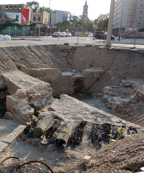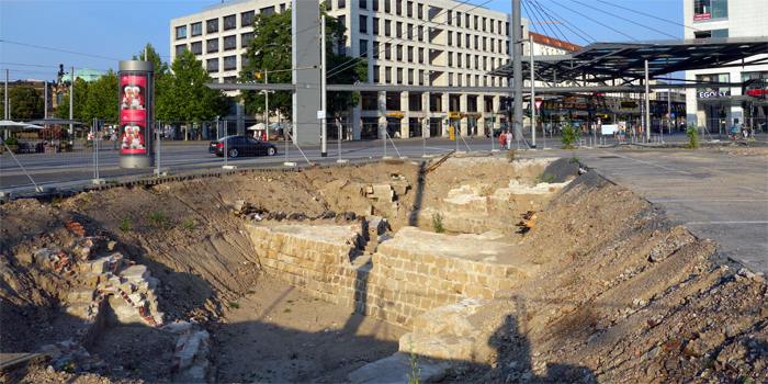 Ausgegrabene Überreste der Bastion Saturn/ Wilsdruffer Tor am Postplatz 2017
