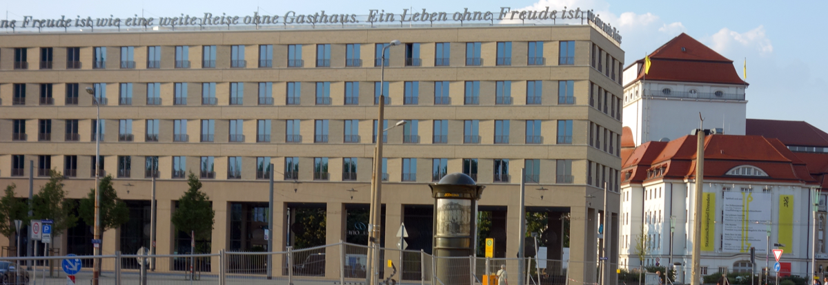 Einerseits begrenzt durch Bauwerke von Weltruf – die Barockbauten Zwinger und Taschenberg-Palais und das Große Schauspielhaus im Jugendstil – zeigt er dem Betrachtenden nach Osten, Süden und Westen Lehrbeispiele der verstörenden Auffassung zeitgenössischer Architekten und Stadtplaner von repräsentativen und lebenswerten urbanen Zentren.