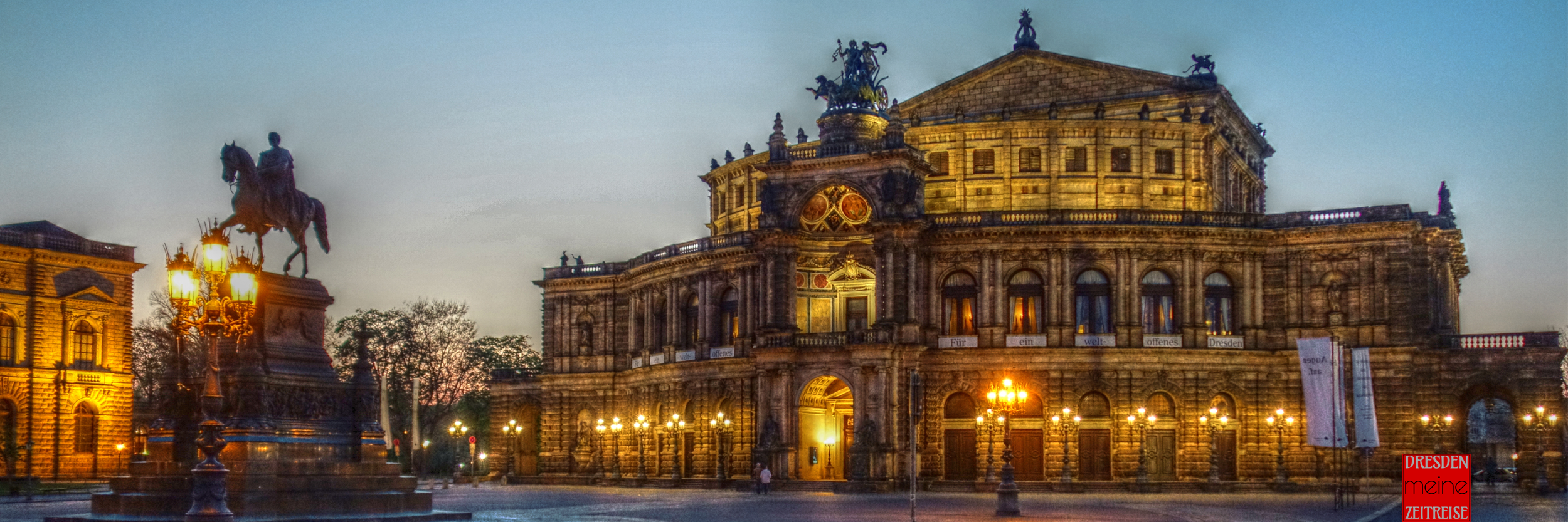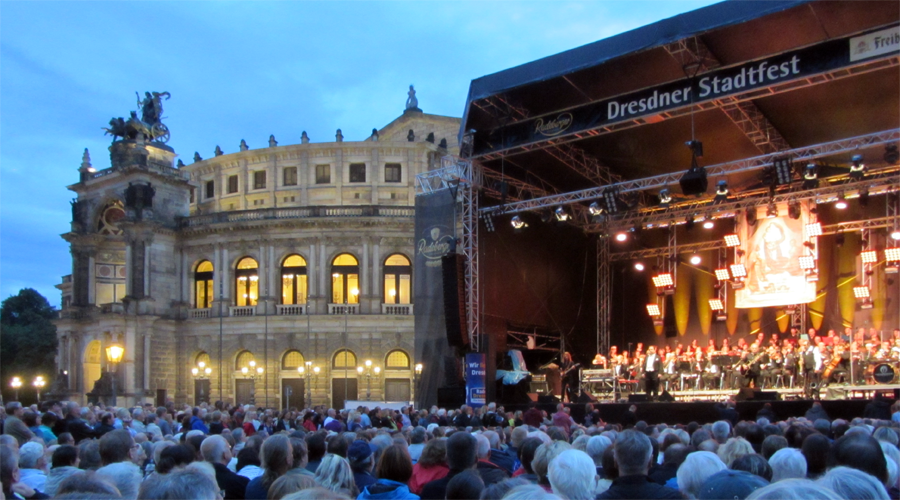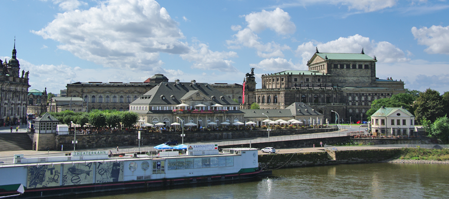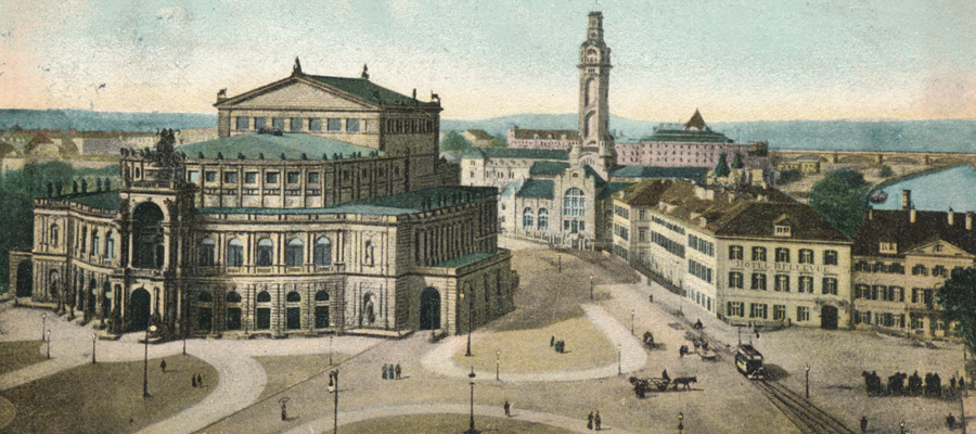 Zerstört, gerettet und 1985 wiedereröffnet, ist die Dresdner Oper ein Juwel der europäischen Kultur. Seit dem 20. Jahrhundert ist der Theaterplatz beliebte Kulisse für politische Kundgebungen, deren Veranstalter starke Bilder in die Welt senden möchten. Vor allem aber ist es der schönste Festplatz der Einwohner Dresdens und ihrer Gäste, die bei Stadtfest, Opernball oder Silvesterparty die Harmonie von Lebensgefühl und Baukultur genießen.