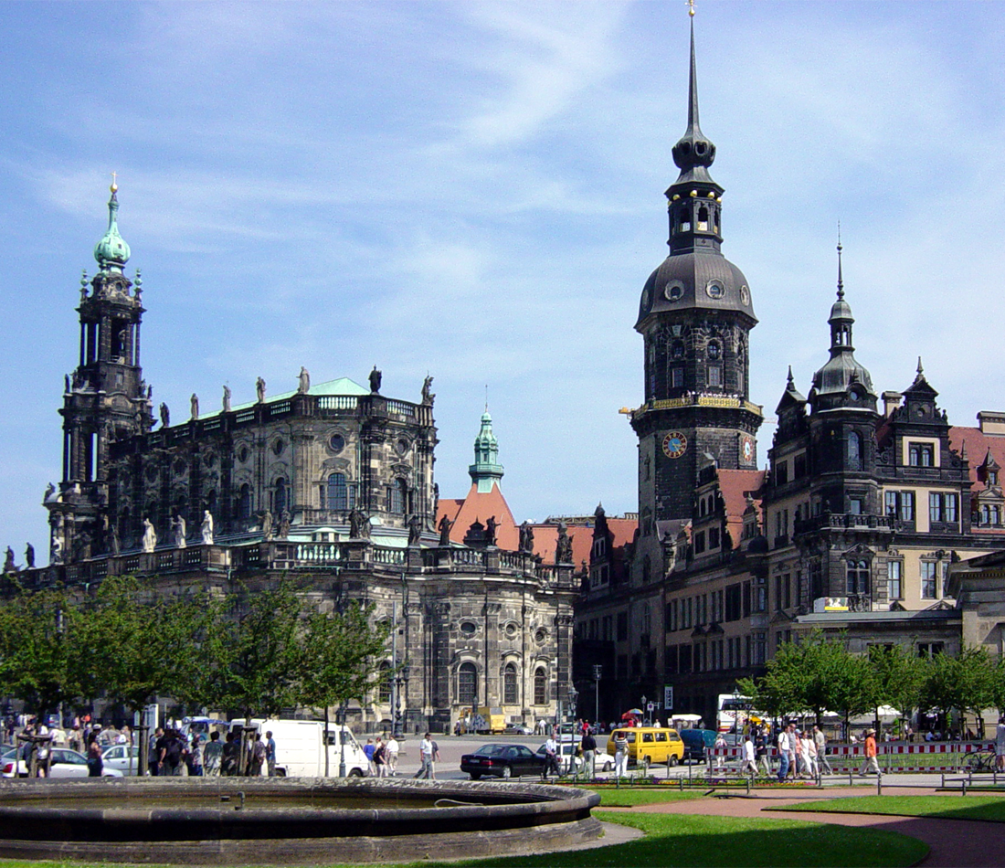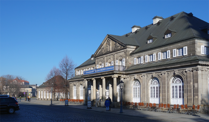 Er war bis weit ins 19.Jahrhundert wirklich voller ehemaliger oder noch genutzter Theatergebäude, die direkt an oder neben Schloss und Zwinger gebaut worden waren, mit dem man nach dem 7-jährigen Krieg (1756-1763) und dem Ende der prächtigen Auguste nichts mehr anzufangen wusste. Dazwischen spielte sich das fröhliche Dorfleben der italienischen Erbauer der Hofkirche mit Kuh und Ziege im Stall und Gärtchen am Haus ab. Als im November 1813 Napoleons Besatzung ab- und die russische eingezogen war, befahl Gouverneur Fürst Repnin für den Schlossplatz nebenan die bürgerliche Aufgangstreppe zur adligen Brühlschen Terrasse.