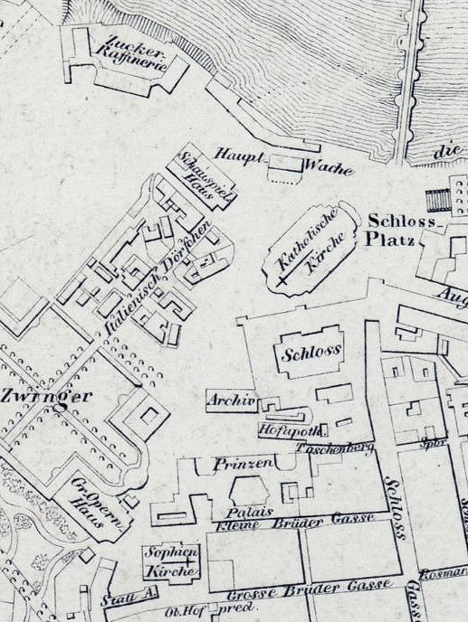 Der Theaterplatz 1828 (Plan von Dresden Deutsche Fotothek/ Wikipedia)